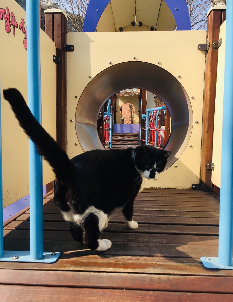 긴 검은 꼬리에 뒷다리 중앙이 하얘요