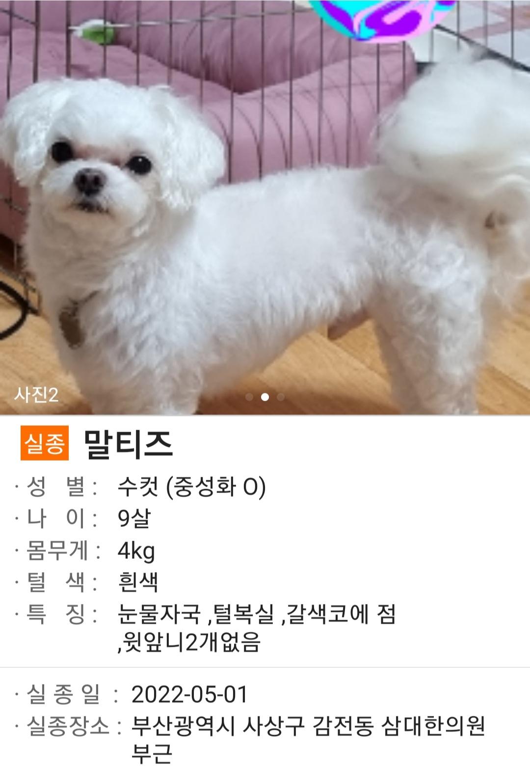 사상구 인근에서 보셨거나 보호중이시면 제보 부탁드립니다.