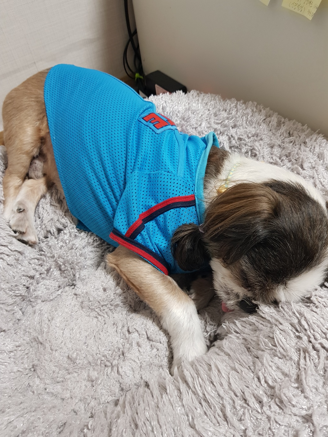 얼마전 미용하여 털이 매우 짧고 사진과 다르게 귓털도 짤막하게 자른 상태입니다