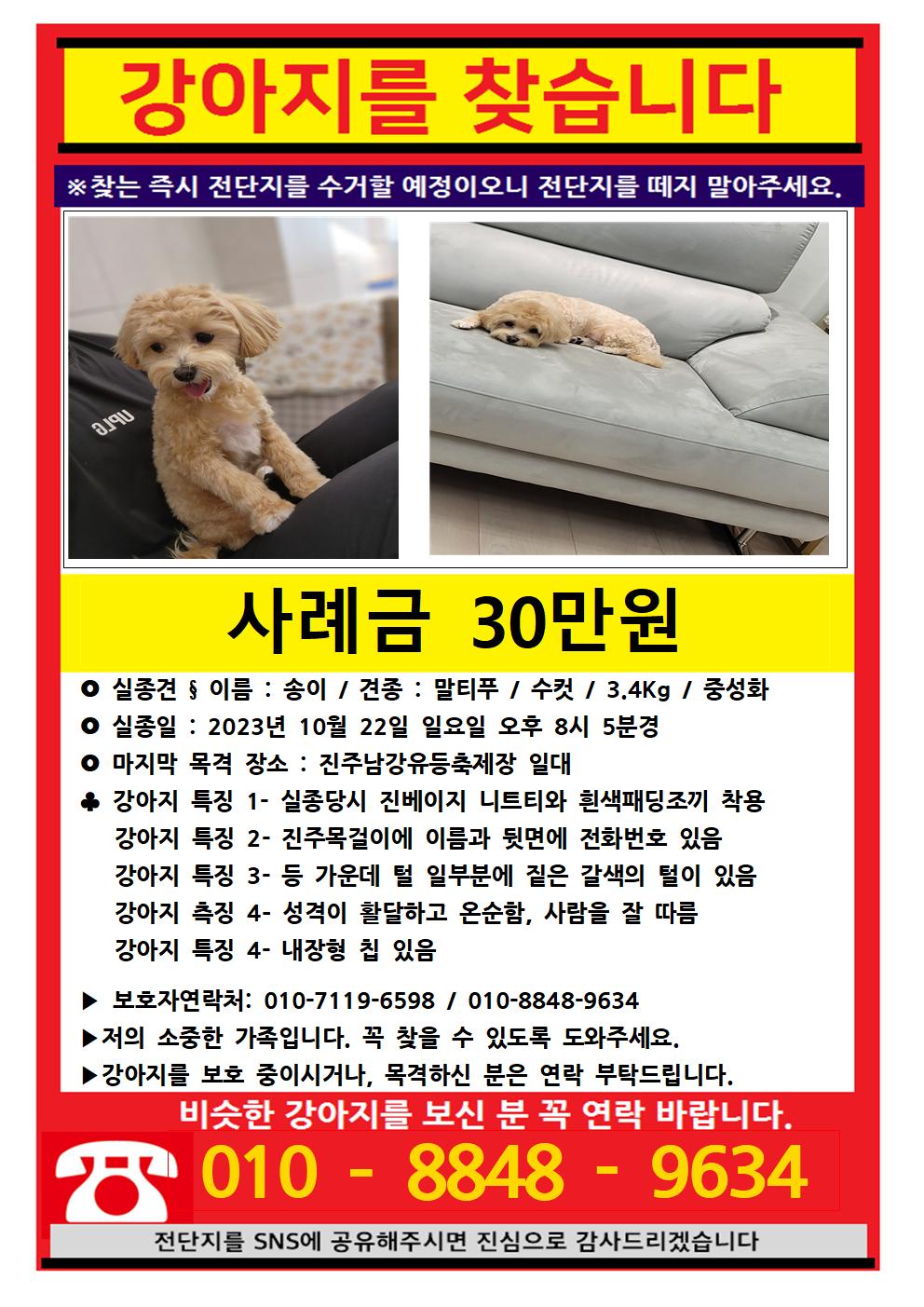 10/22 저녁 8시경 진주유등축제중에 실종 되었습니다. 목격한 분이나 보호하고 계신 분이 있으시다면 꼭 연락 부탁드립니다