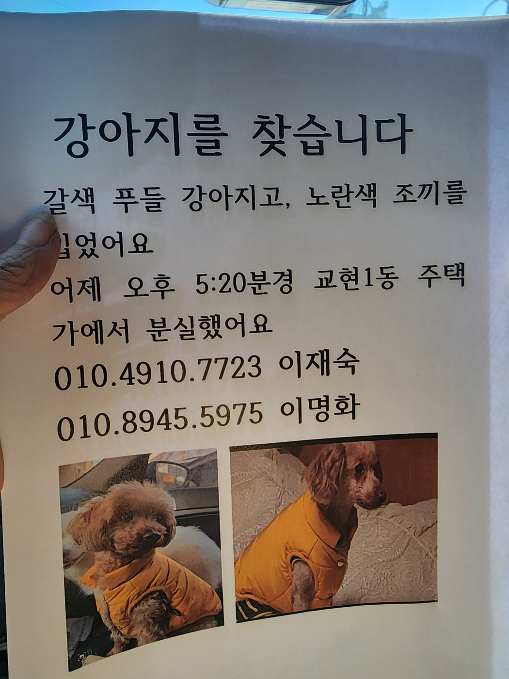 충주시 교현 1동 주택가에서 사라진 갈색 푸들 찾습니다