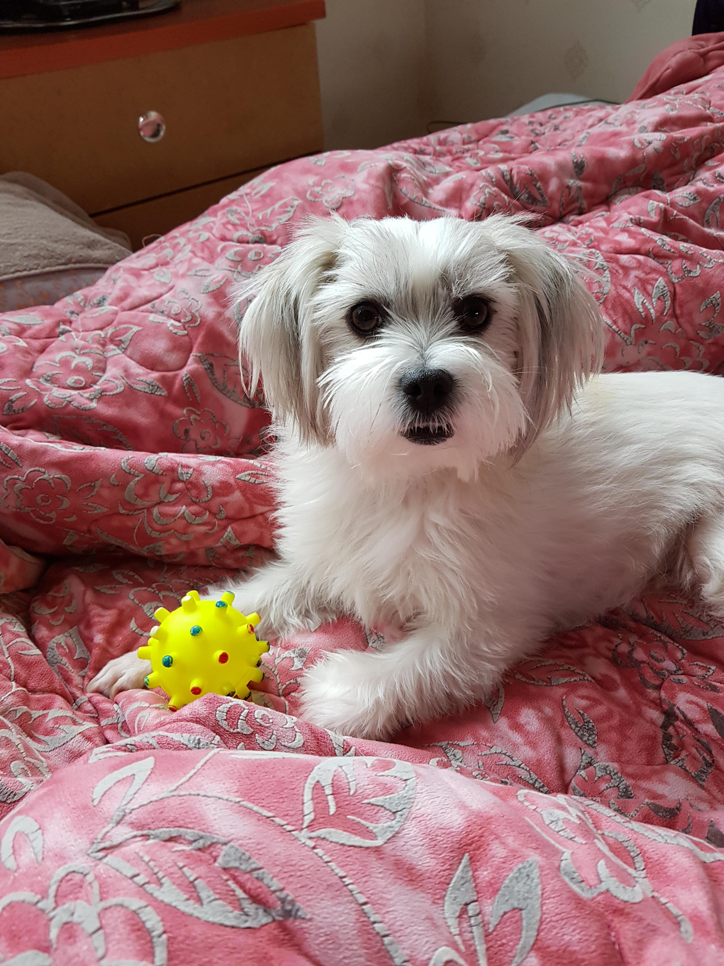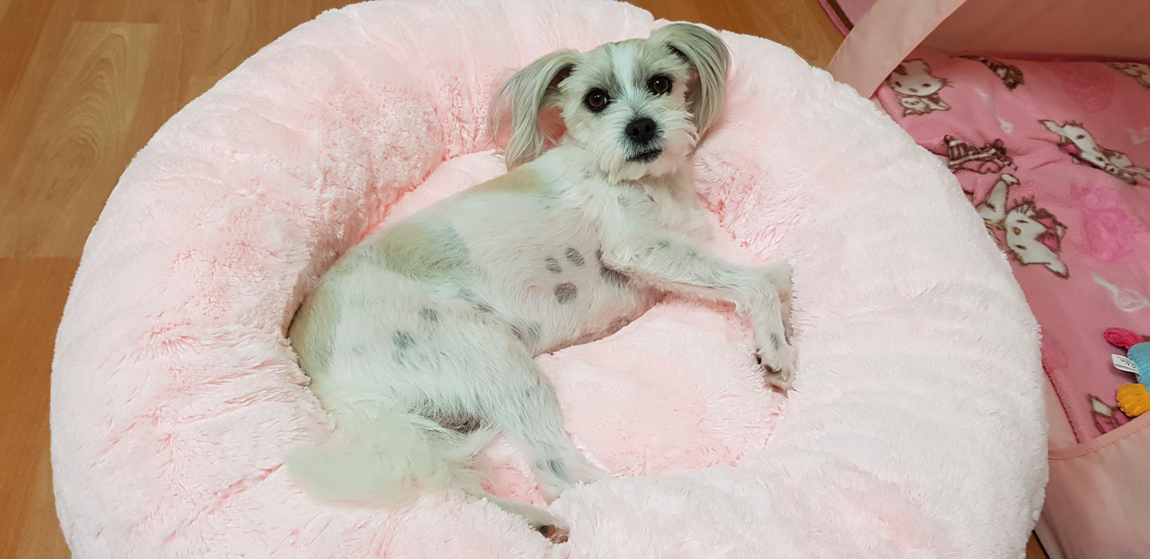 꼬리가 둥글게 말려있고 양쪽 뒷다리 두개 슬개골 수술함
