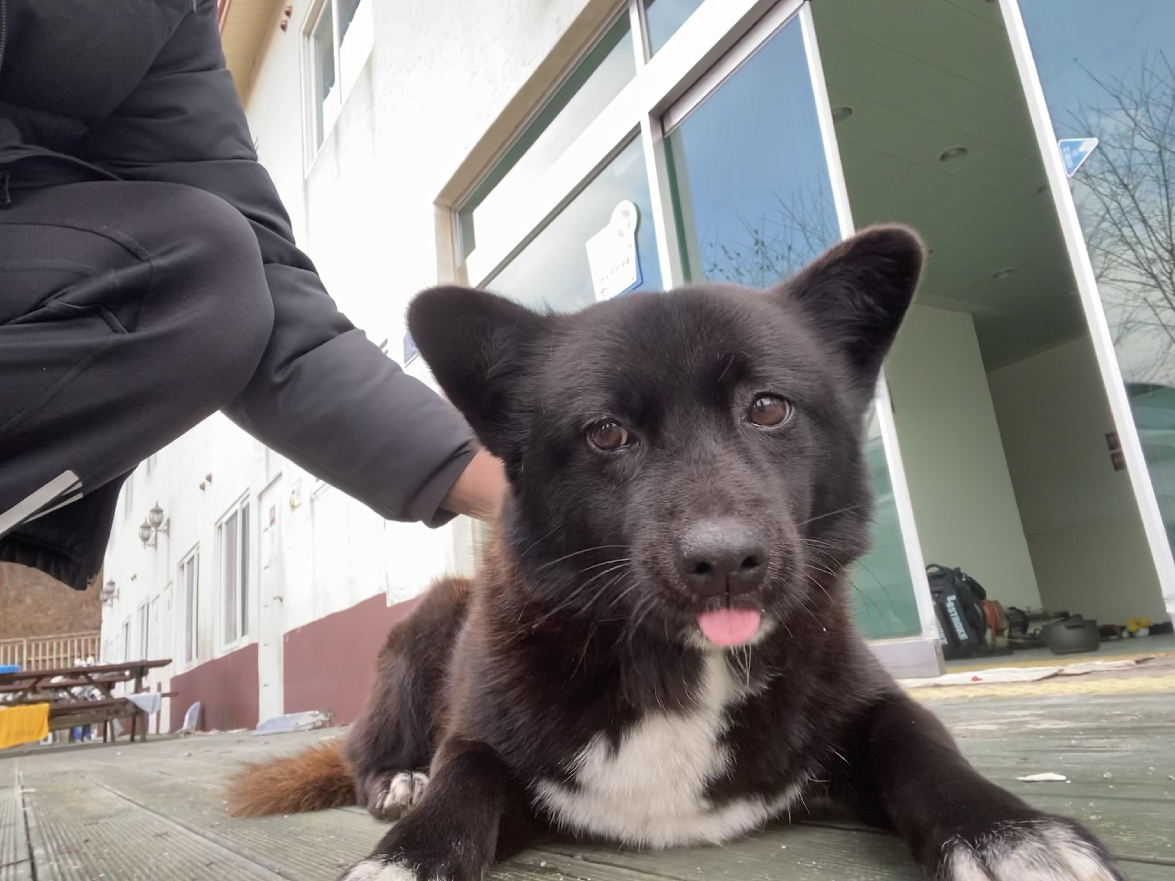 캠핑장에서 풀러놓고 키우는 개라 사람을 잘따르고 좋아합니다