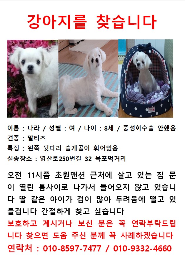8살 말티즈 여아를 찾습니다