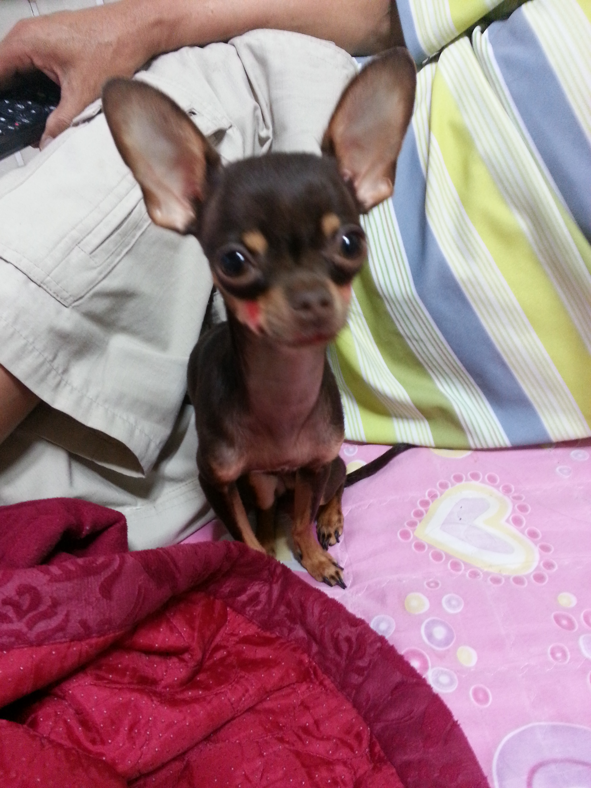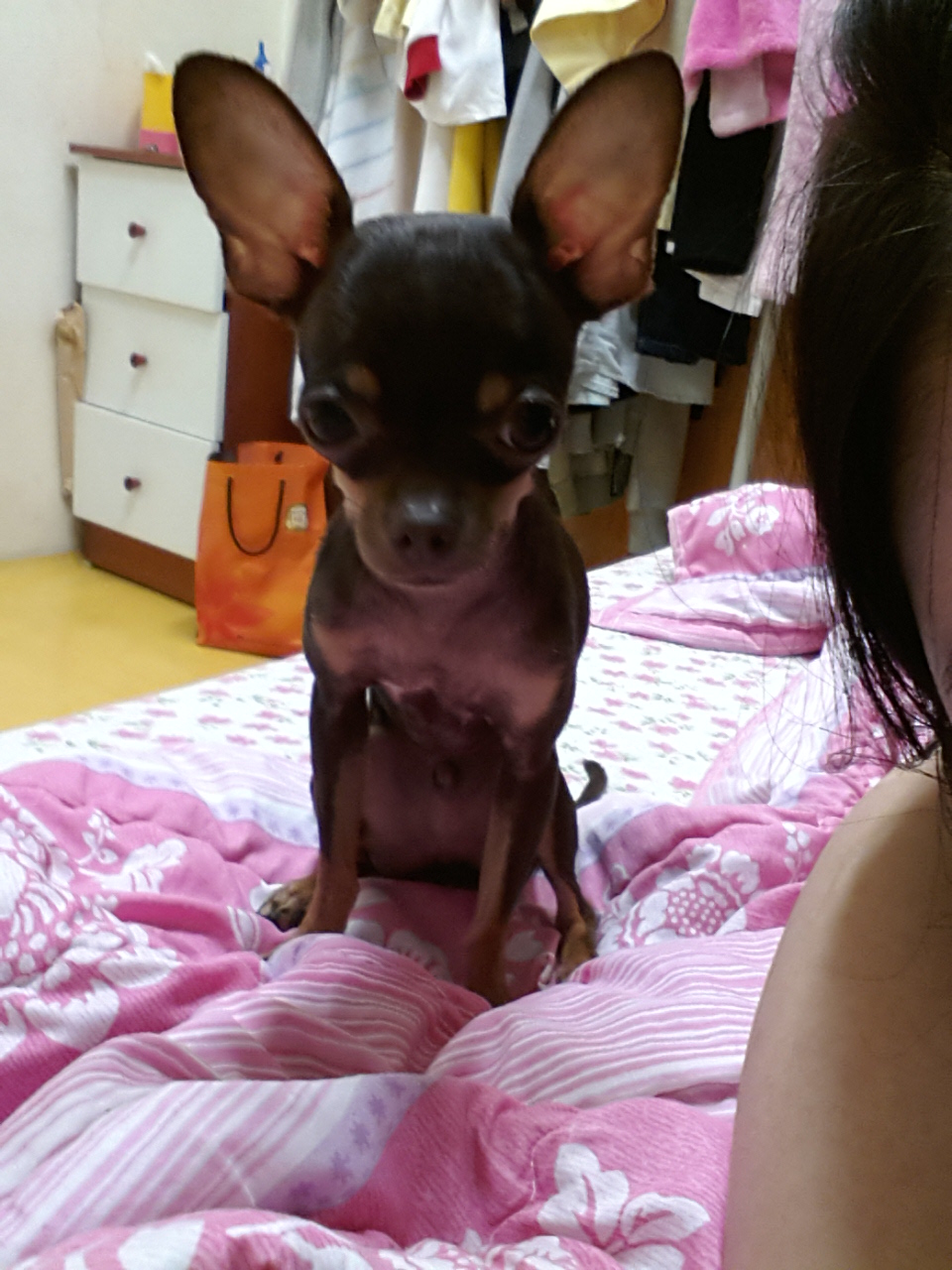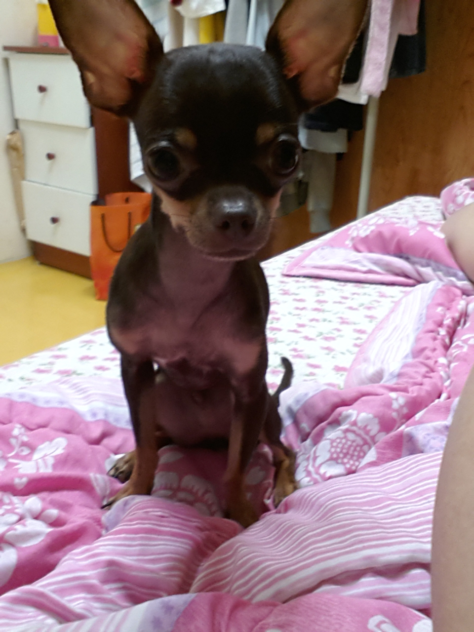몸집은 엄청 작구요 . 귀는 크며 남자아이고 치와와에요