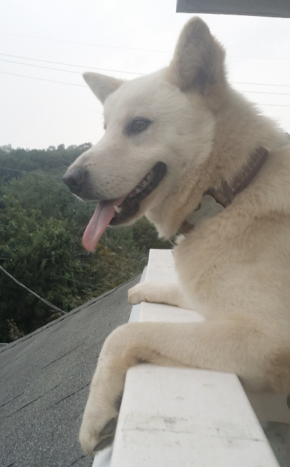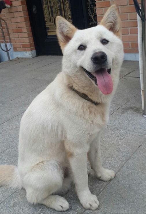 몸은 얼굴에 비해 누렇습니다. 중형견으로 크기는 50Cm 정도 됩니다.
