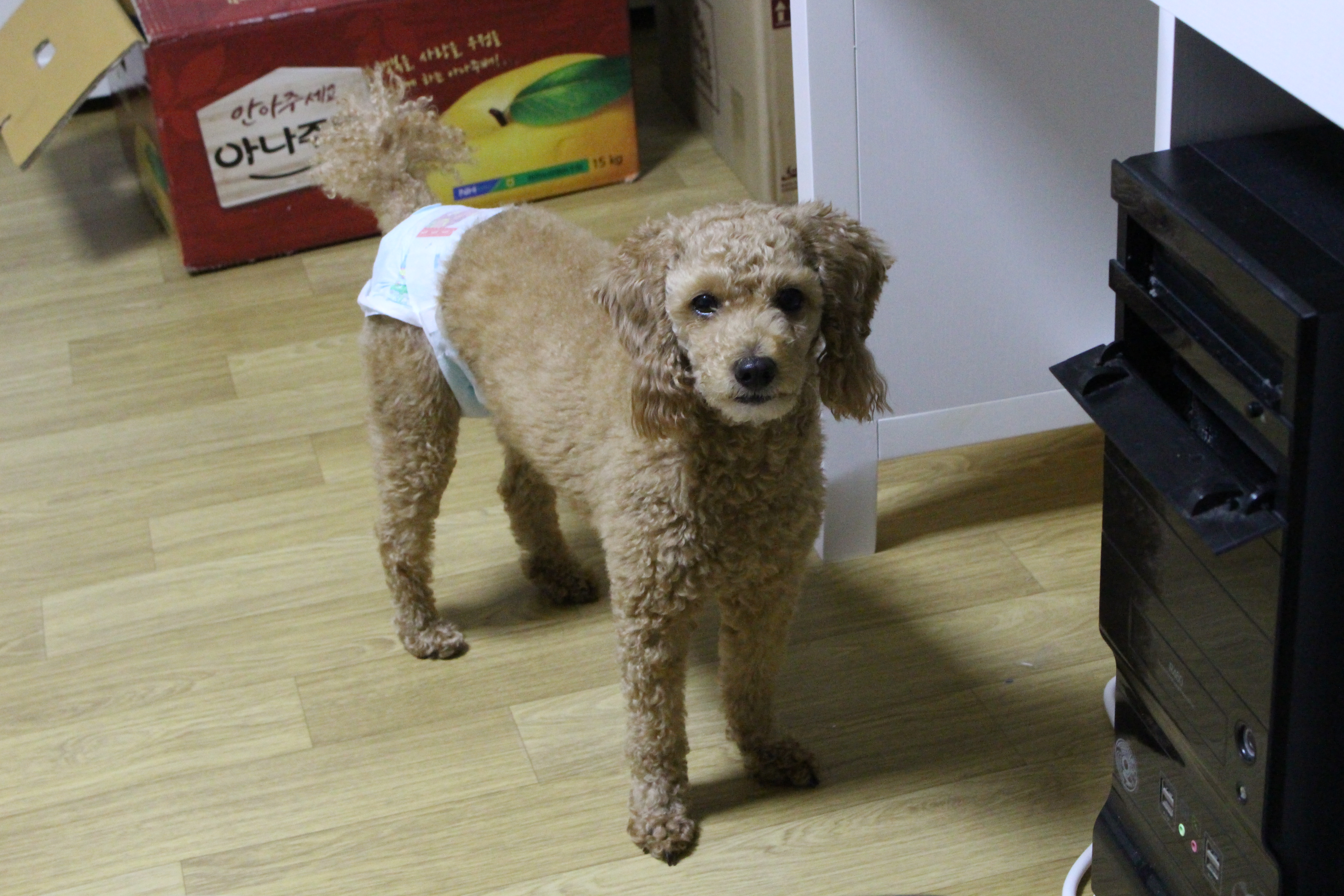 갈색푸들이고 나갔을때 당시에 기저기를 착용하고있었습니다.