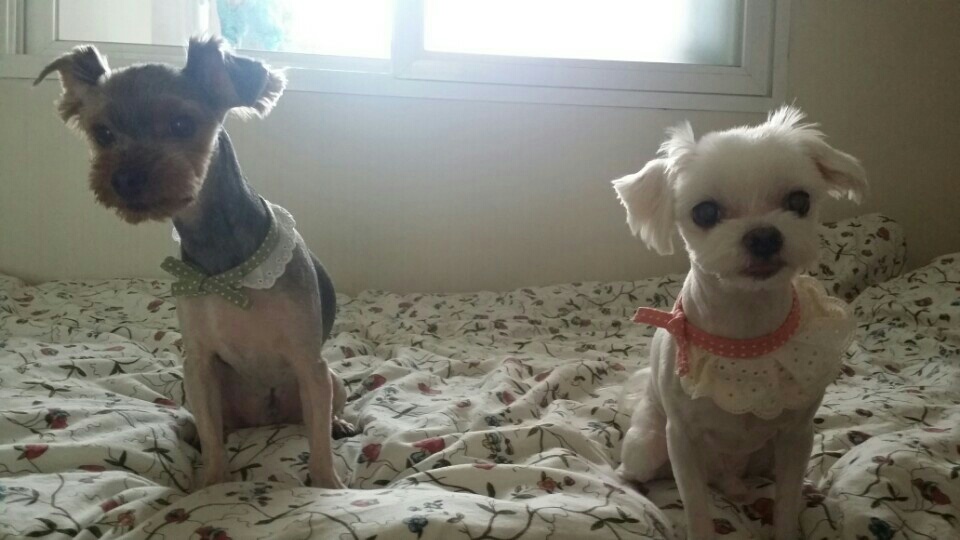 꼬리가 유난히 길며,미용을 한지 얼마 안되어 전체적으로 털이 짧습니다.