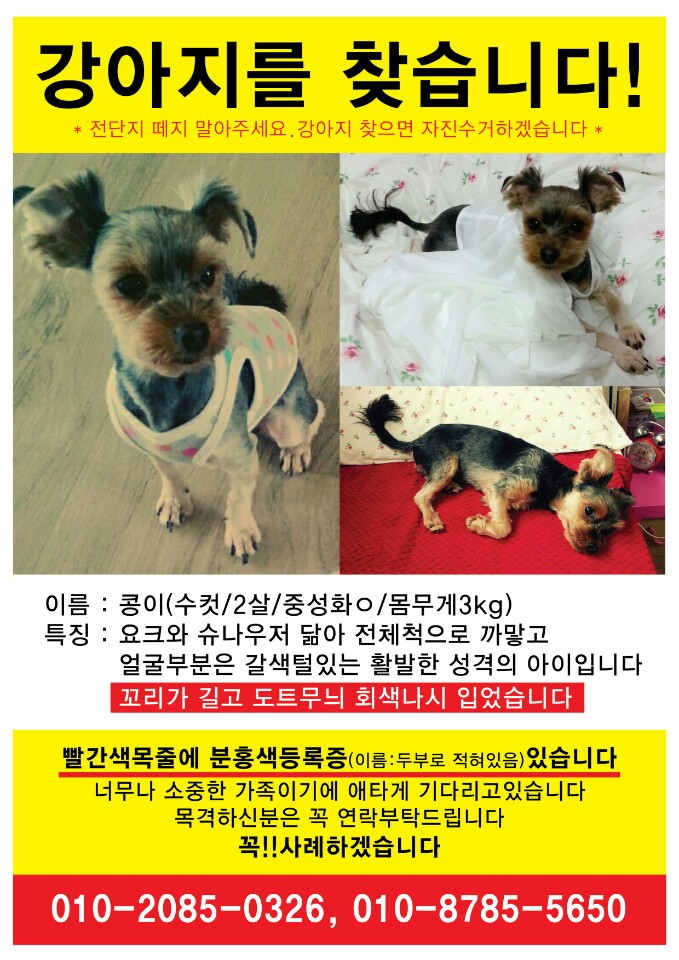 강아지를 찾습니다(요크셔테리어)