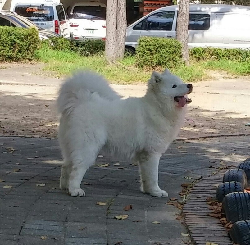 꼬리는 풍성하게 위로 말려 올라가 있구요,