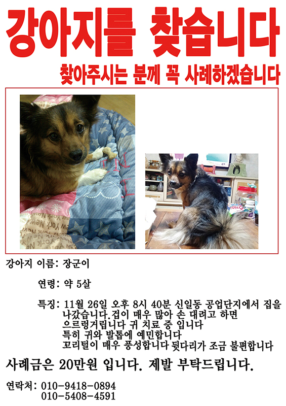 유기견,강아지 찾아요) 장군이를 찾습니다