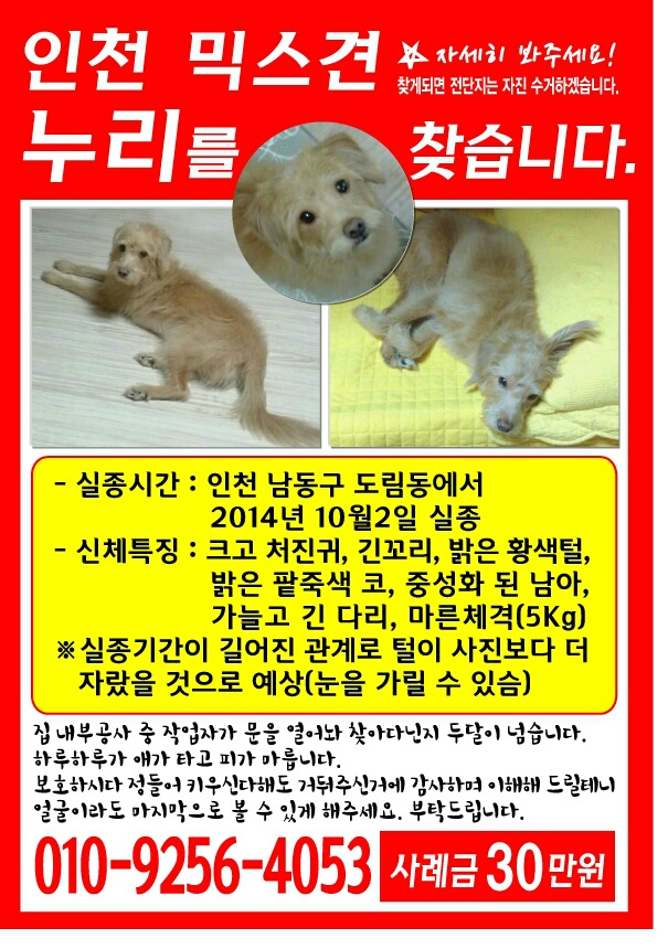 인천 믹스견 (푸들믹스) 누리찾습니다.