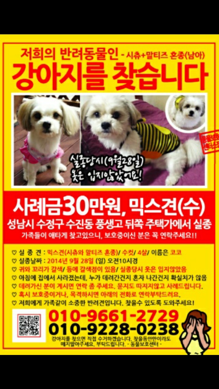 코코를 보시거나 보호하고 계신분은 꼭 사례할테니 연락 부탁드립니다
