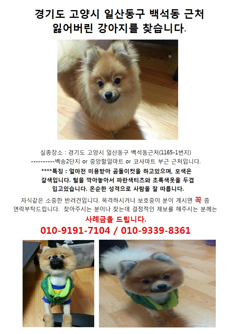 경기도 일산 백석동 아기 포메찾습니다!!! - 강아지 찾아요 - 유기견 보호 센터 (1) 260.3KB 50