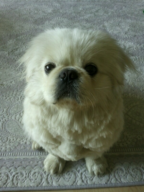 특징: 흰색 페키니즈 강아지로 일반 애완견 강아지들보다 덩치가 큽니다.