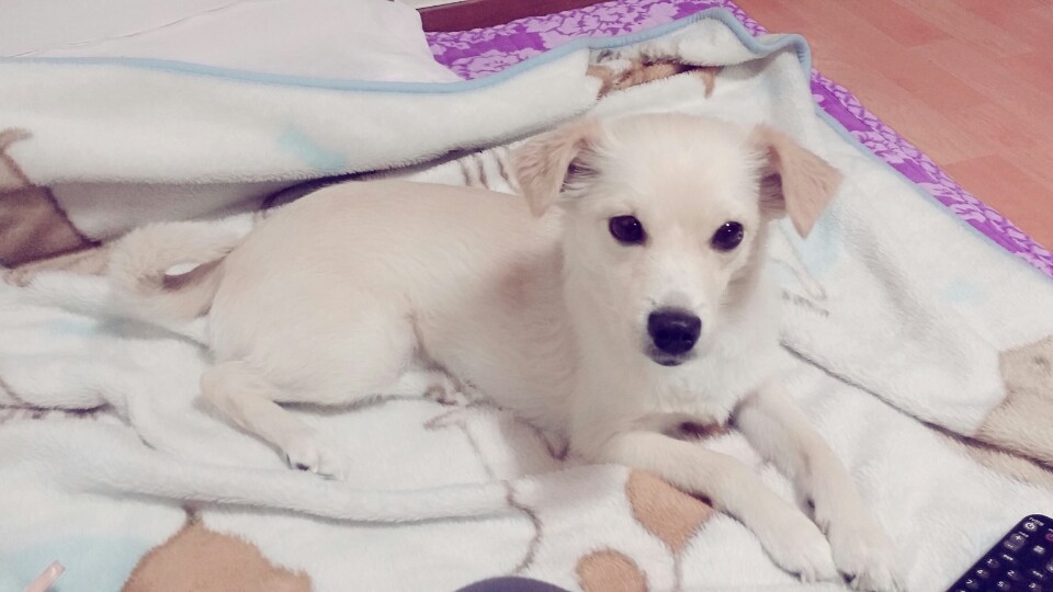 흰색 강아지 보호중입니다