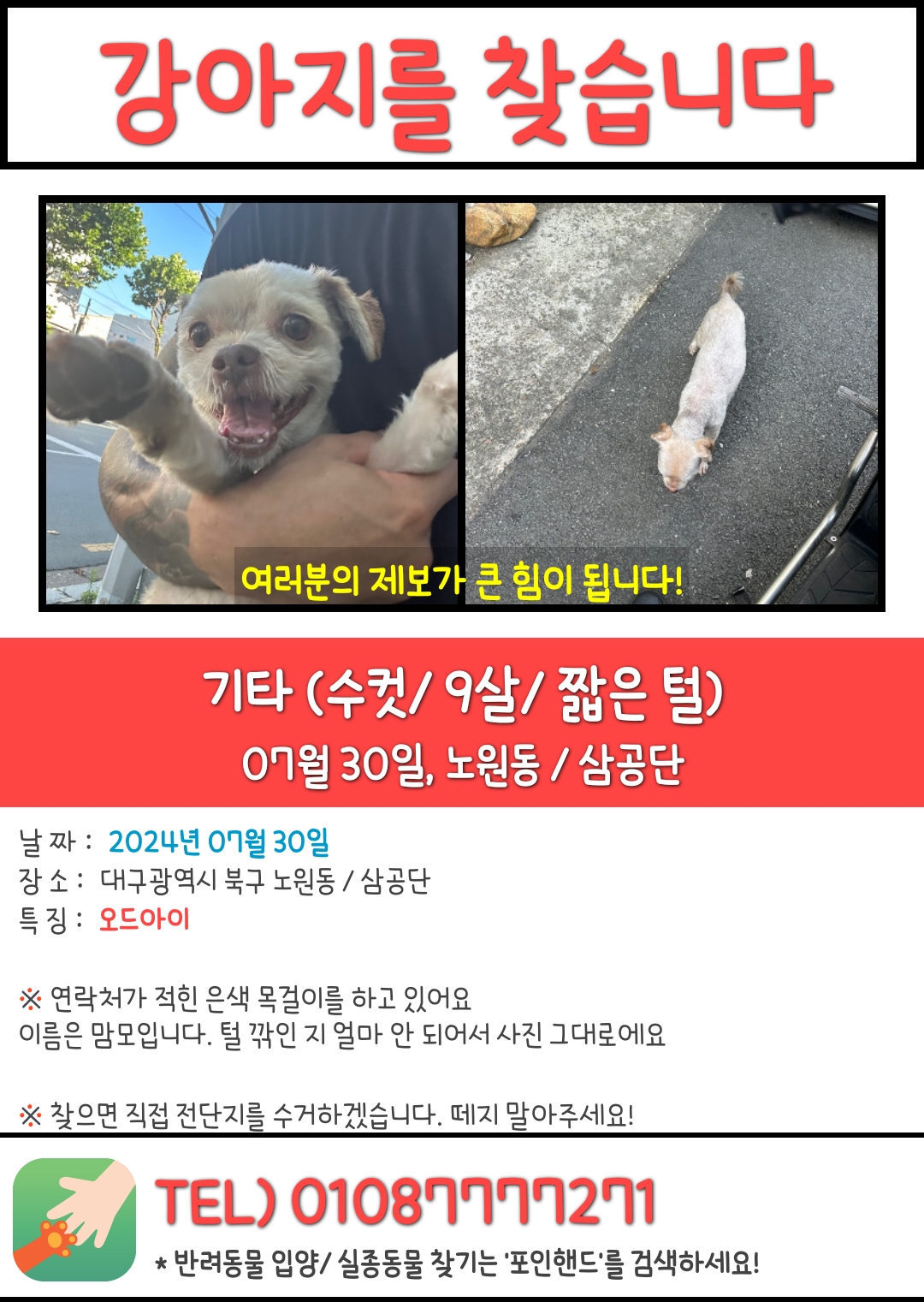 대구 삼공단 노원동 노원네거리 침산동 강아지 좀 찾아주세요 - 강아지 찾아요 - 유기견 보호 센터 (1) 677.6KB 6