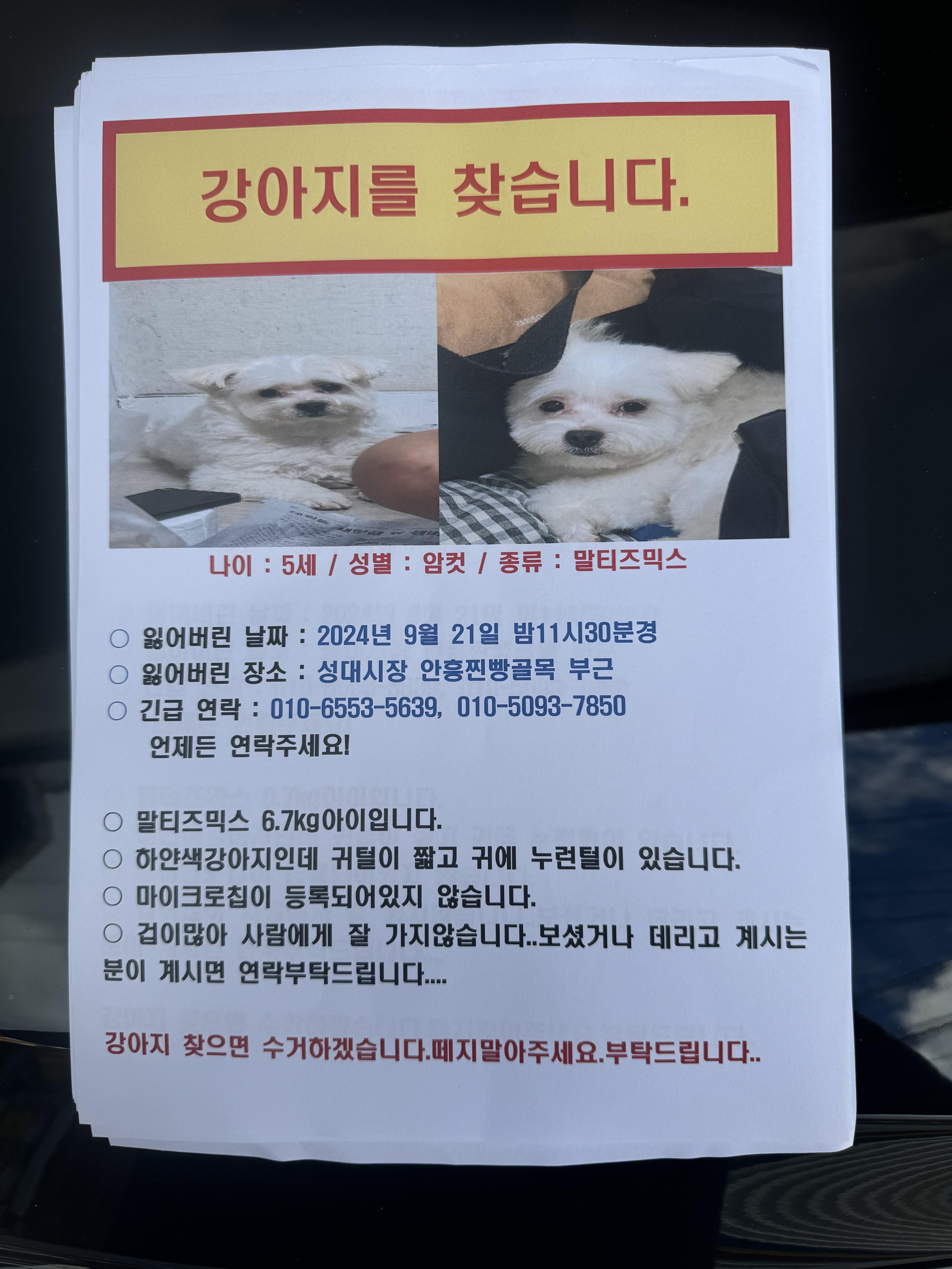 | 분실장소 | 서울특별시 상도동 신대방삼거리역 인근 및 성대시장 9월21일에서22일넘어가는저녁12시 성대시장대로변 마지막모습 확인 |