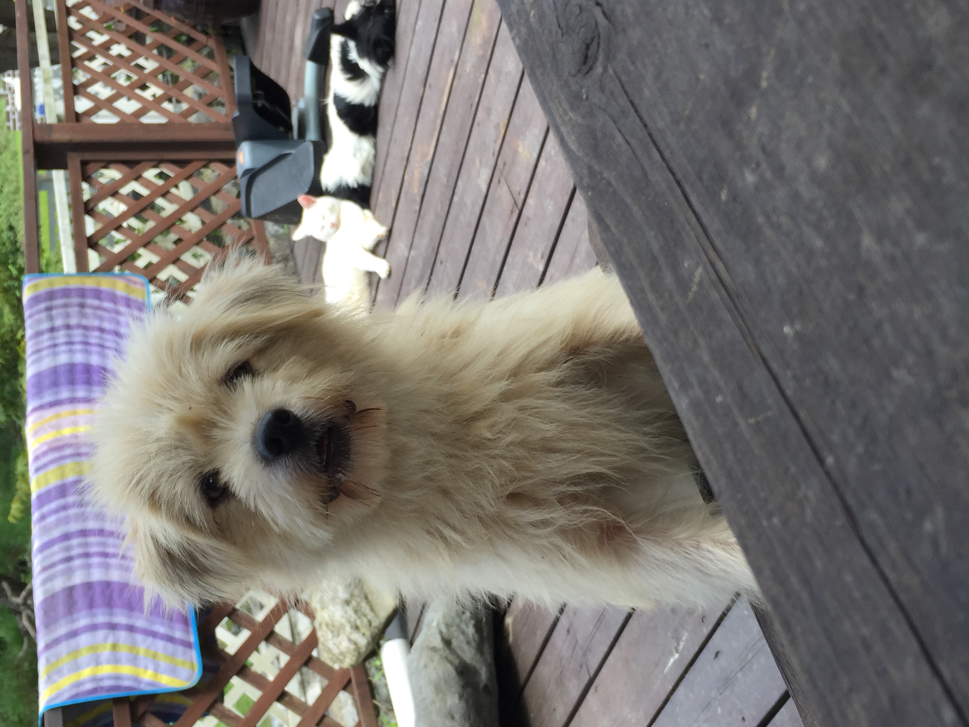 믹스견이고, 나이는 2살, 몸무게 6.7kg, 중성화 수술 되어 있지 않습니다. 얼굴이 귀엽게 생긴게 최대 장점인 것 같습니다.
