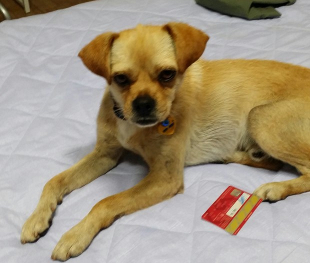 털상태며 발톱상태는 깨끗한 상태였으며, 파란색 목걸이에 노란 하트모양 이름표가 매달려있는데