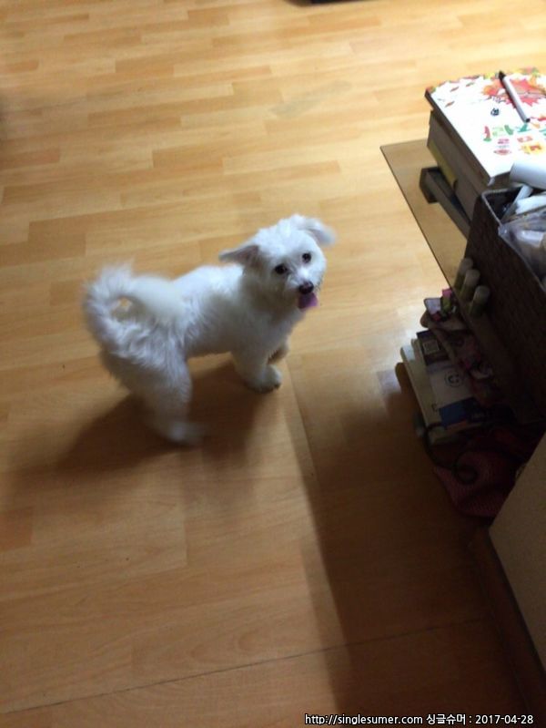천호동 부근에서 발견한 흰색 믹스견 보호중입니다.
