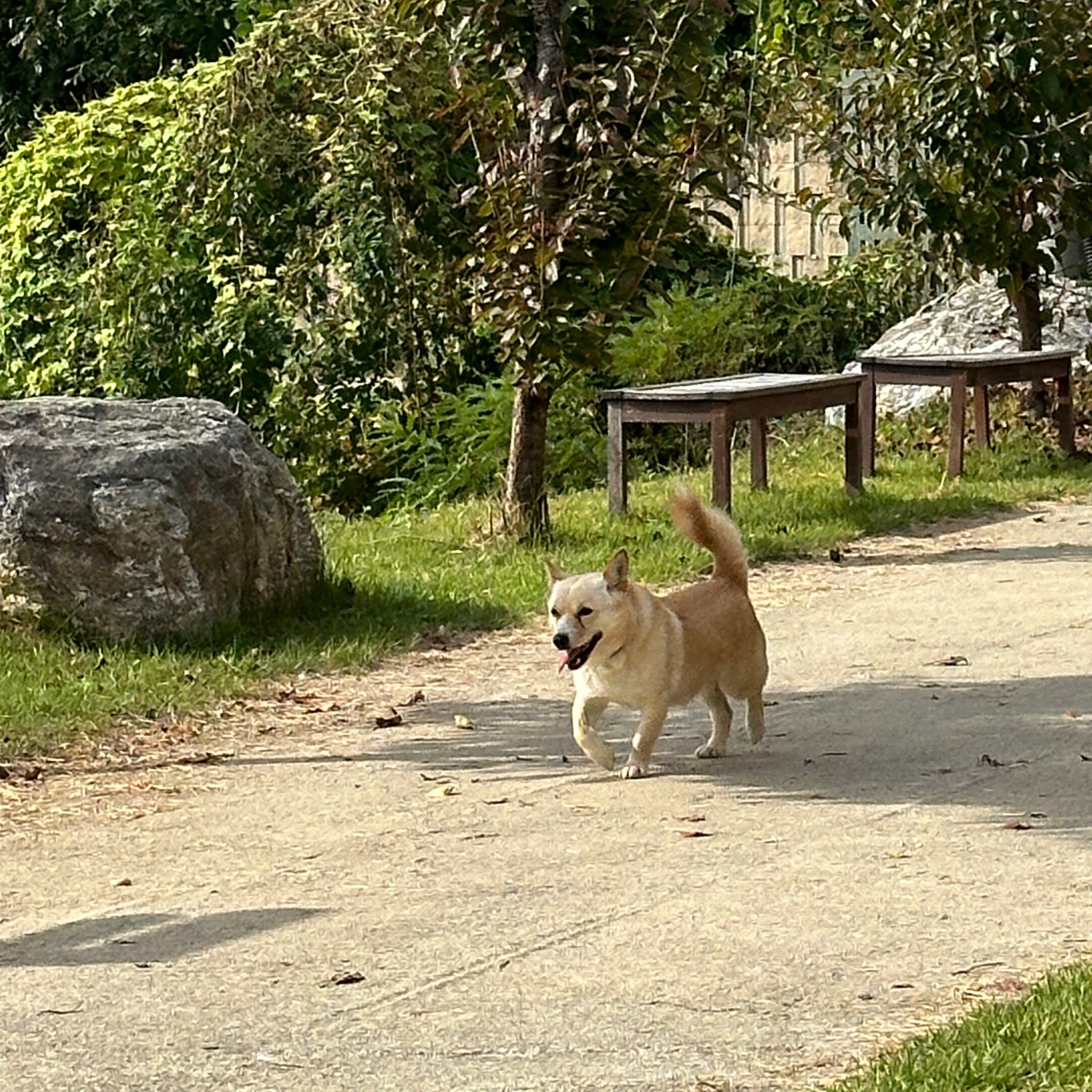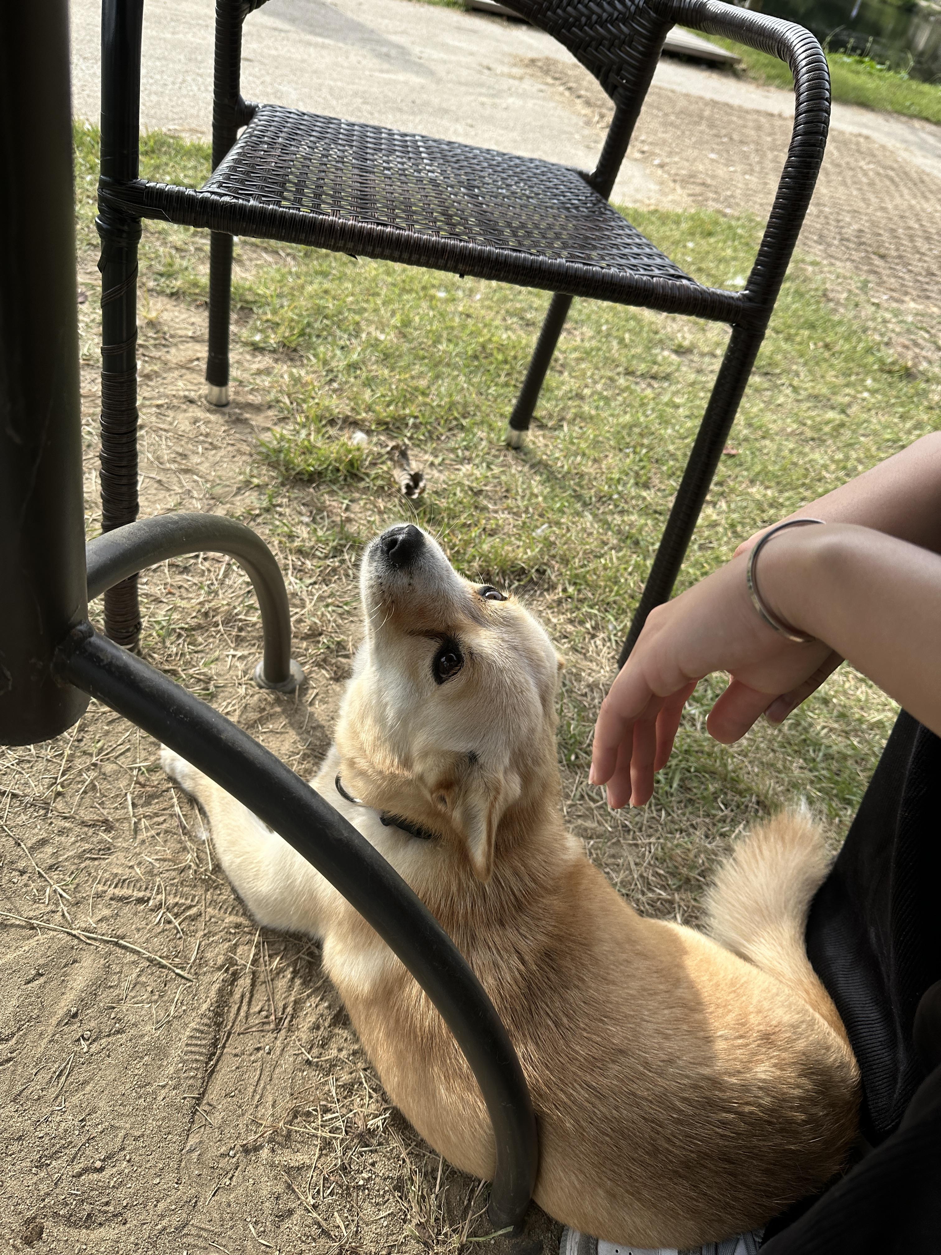가평에서 떠돌이 개를 보고 임보중입니다. 주인분 찾아요! (치즈색 다리짧은 믹스견)