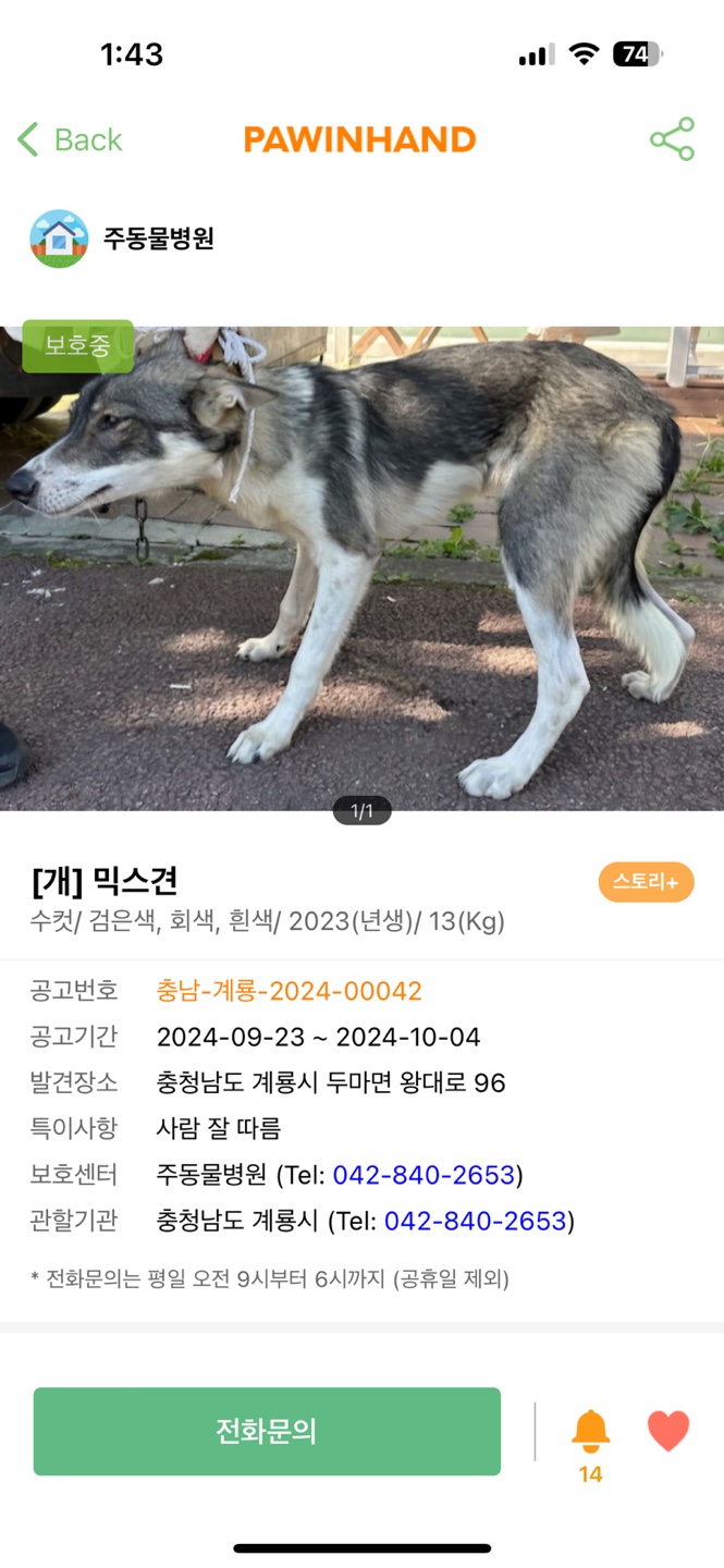 회사 앞 주차장에 들어와서 나가질 않아 신고했더니 유기견 공고에 올라와서 ㅠ